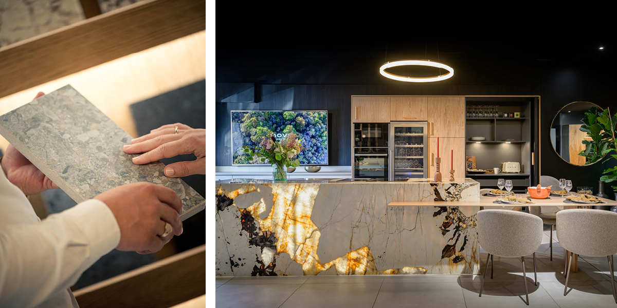 Le showroom propose un large choix de cuisines équipées dans une ambiance chaleureuse, où le bois, en particulier le chêne français, occupe une place centrale. On y retrouve également des gammes de plans de travail et d’électroménagers s'alliant parfaitement à nos modèles pour équiper vos intérieurs.