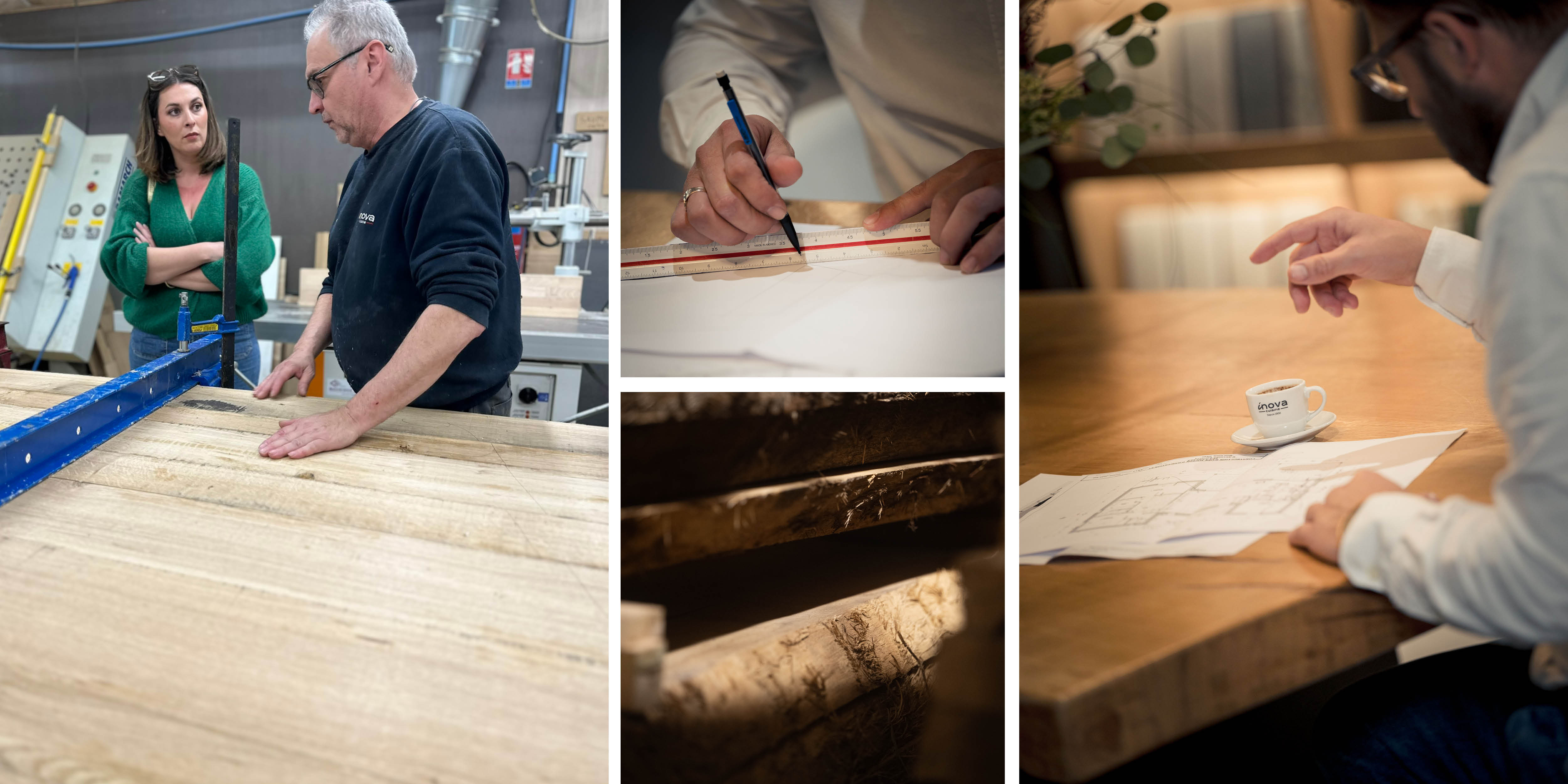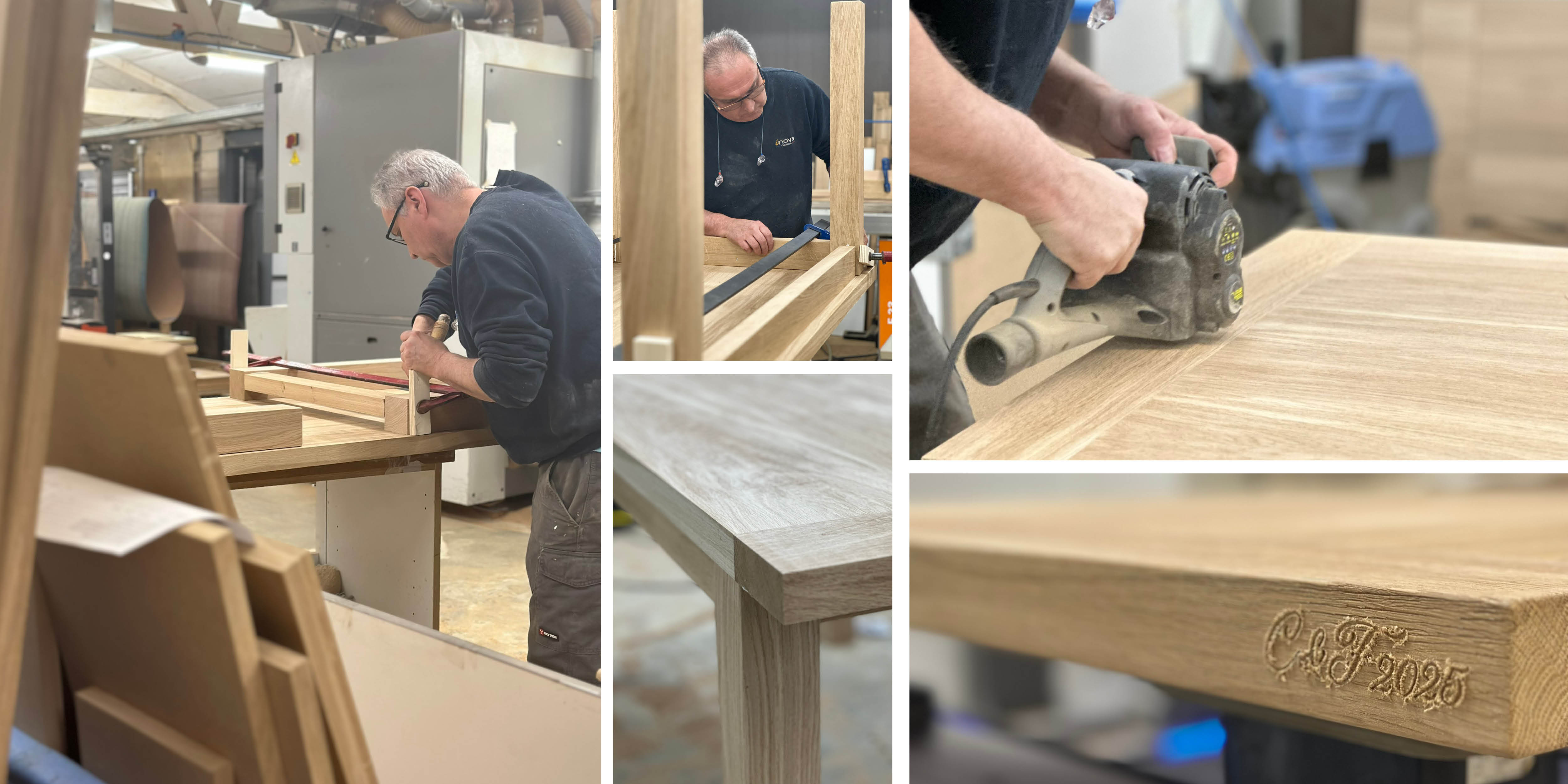 Chez Inova Cuisine, chaque projet est une aventure unique. Aujourd’hui, nous vous invitons à découvrir les coulisses de la fabrication d’une table en chêne massif sur mesure, pensée et façonnée avec passion dans nos ateliers.
