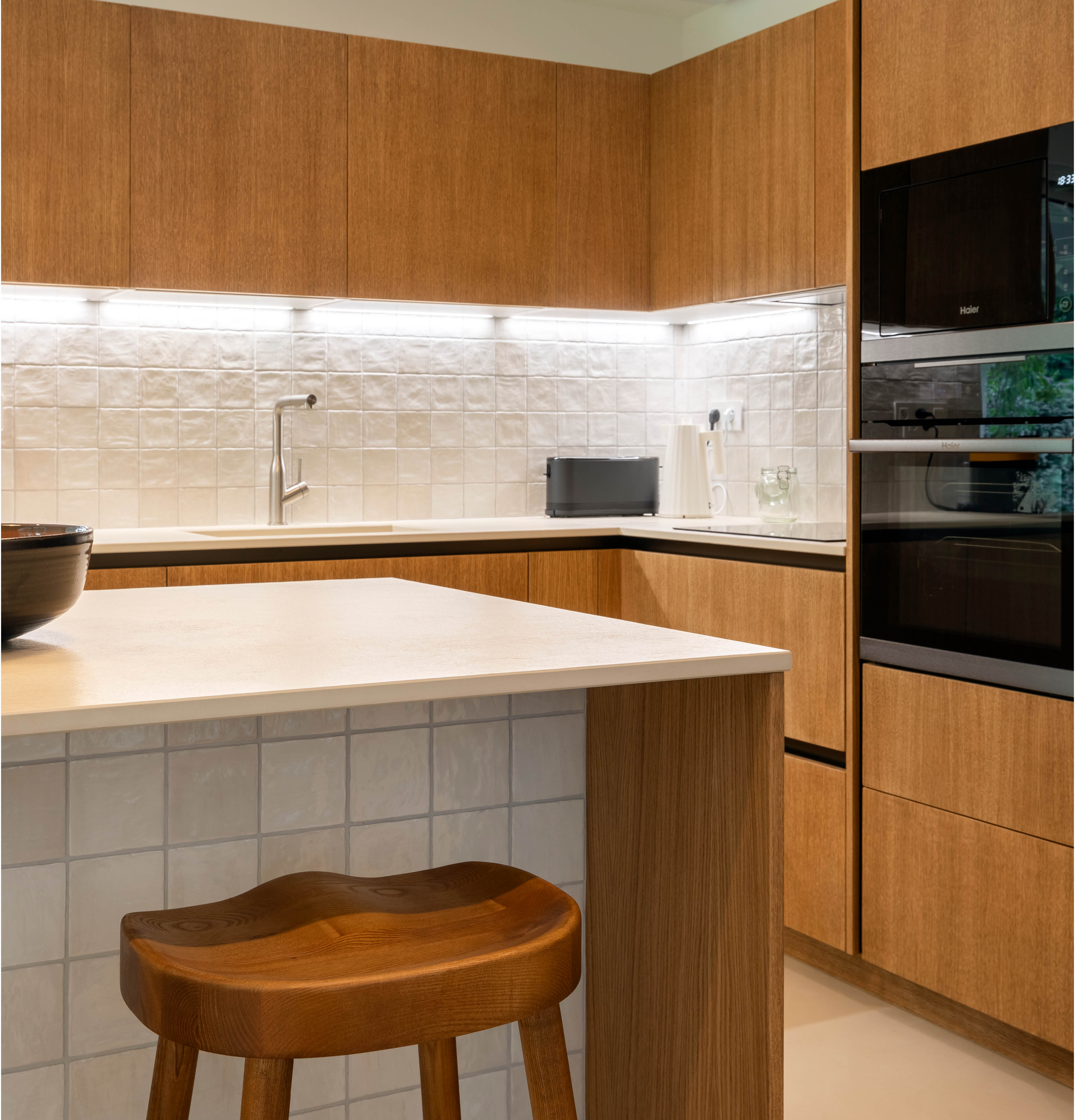 Une façade moderne et authentique réalisée à partir de placage de chêne massif.