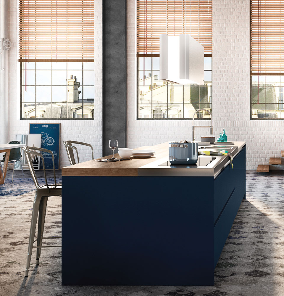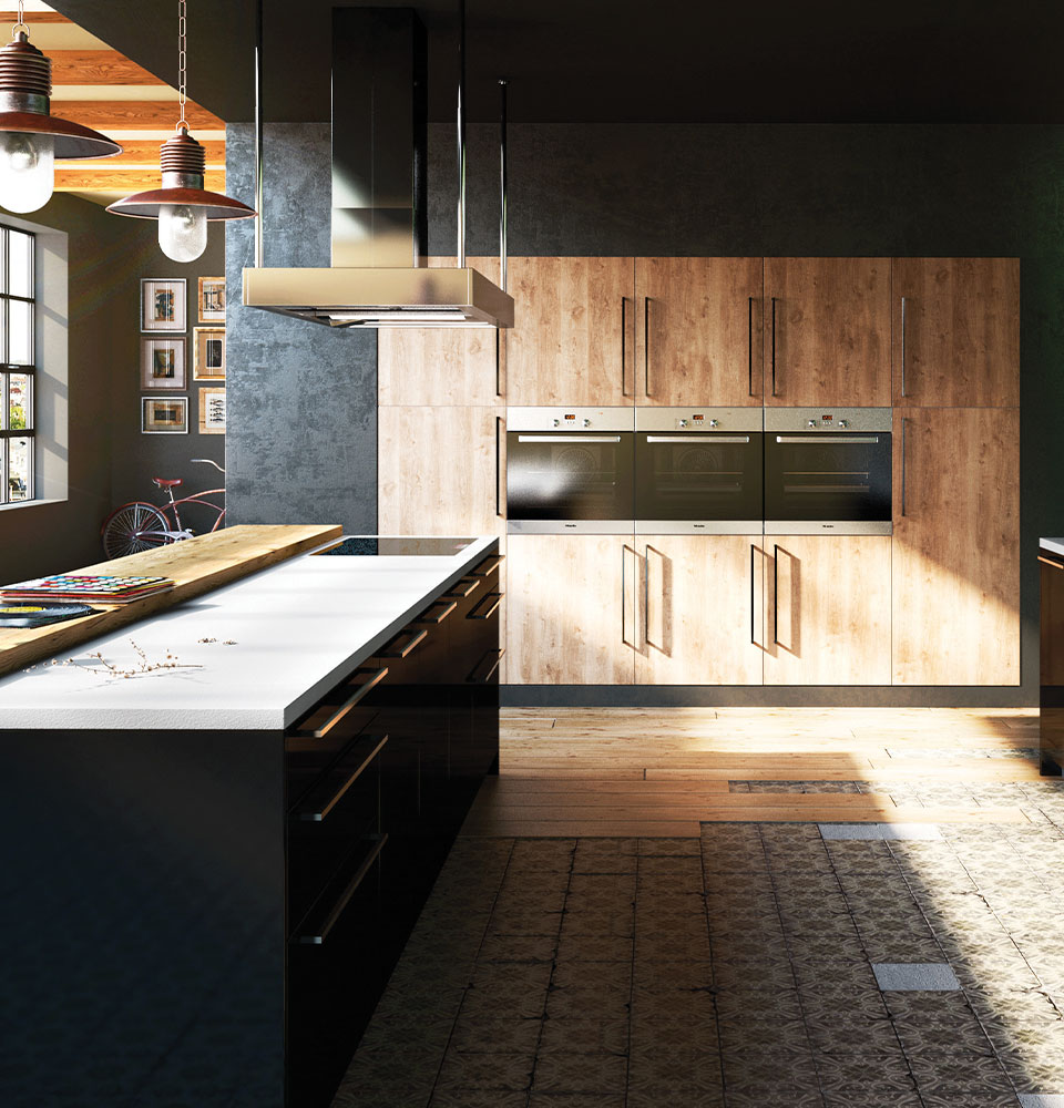 Vous préférez un style industriel ? Privilégiez des façades noires en finition mate et un plan de travail en bois.