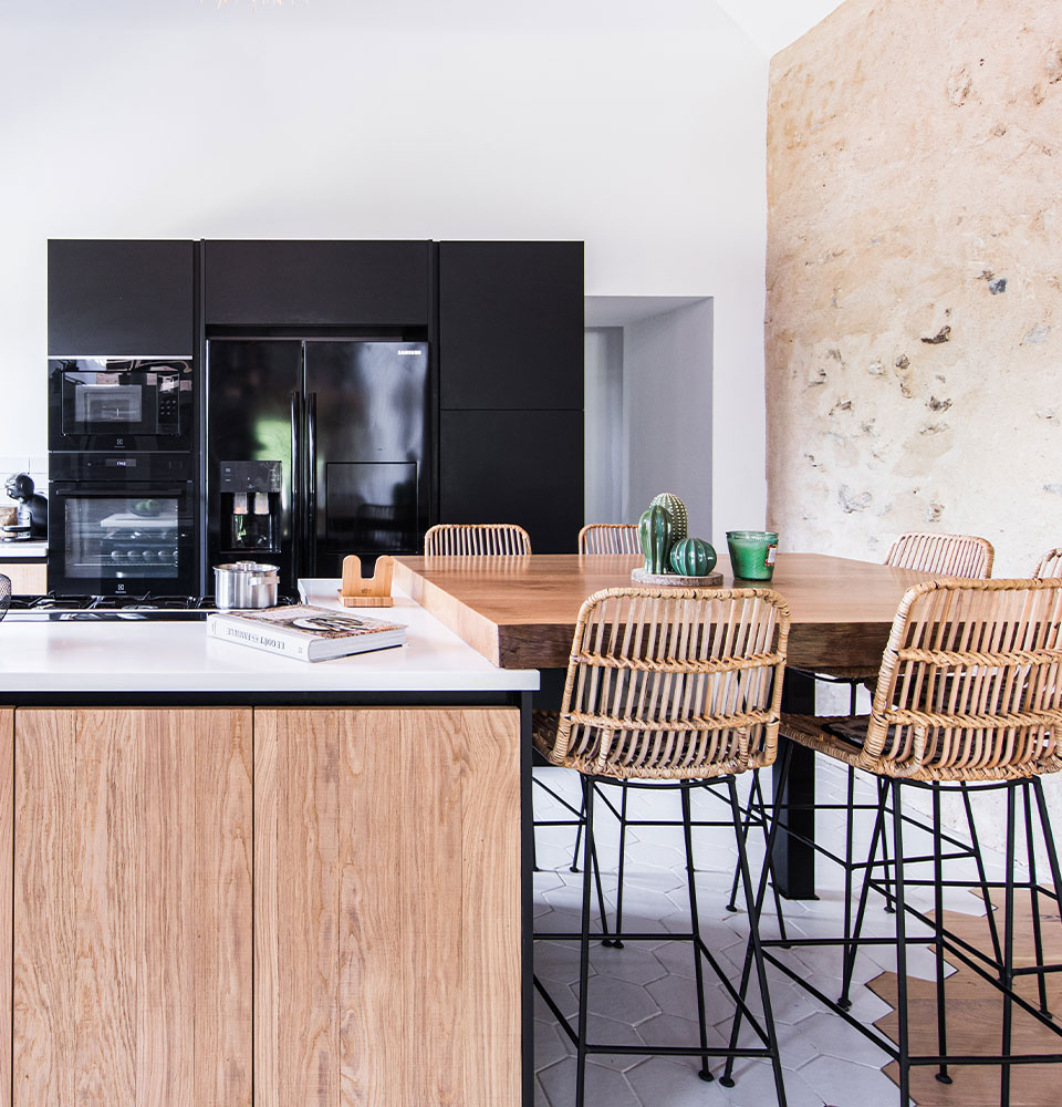 Cette matière naturelle est idéale pour créer un espace repas et traversera les années sans se démoder.