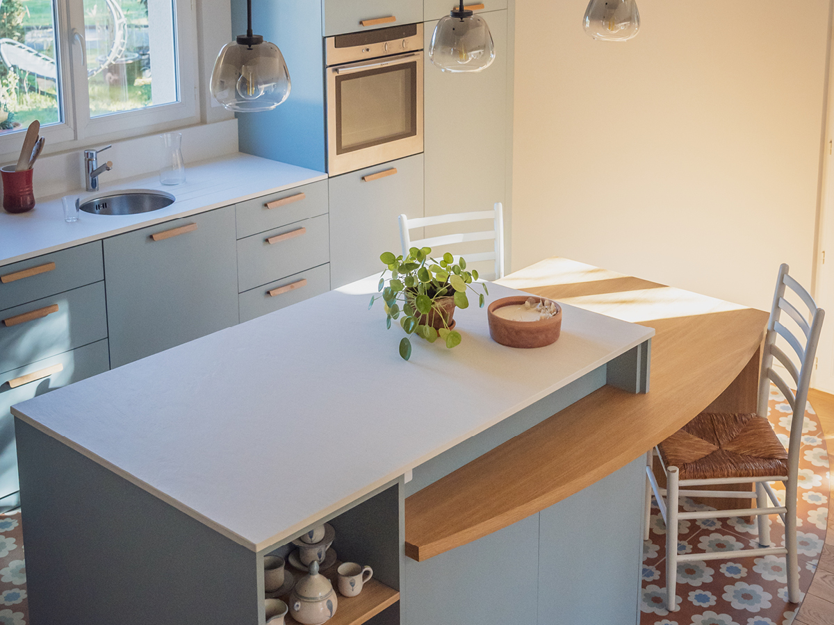 Dans le cadre de la rénovation totale de leur maison, Corinne et Denis souhaitaient une cuisine originale, unique en son genre.