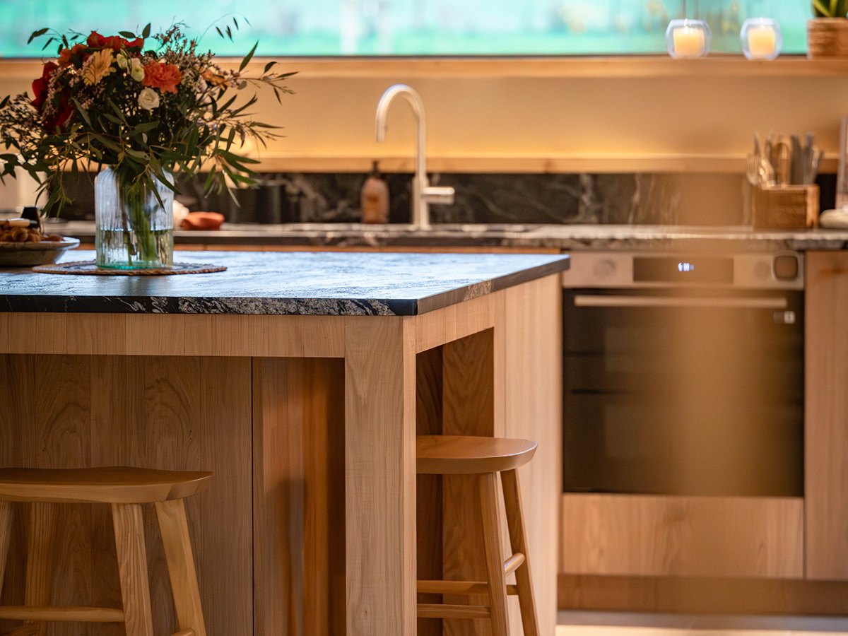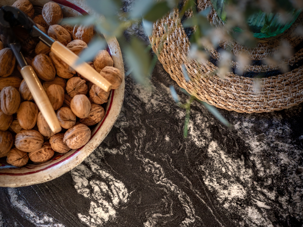 Le plan de travail en granit Black Beauty Sensa de la marque Cosentino apporte profondeur et caractère à l’ensemble.