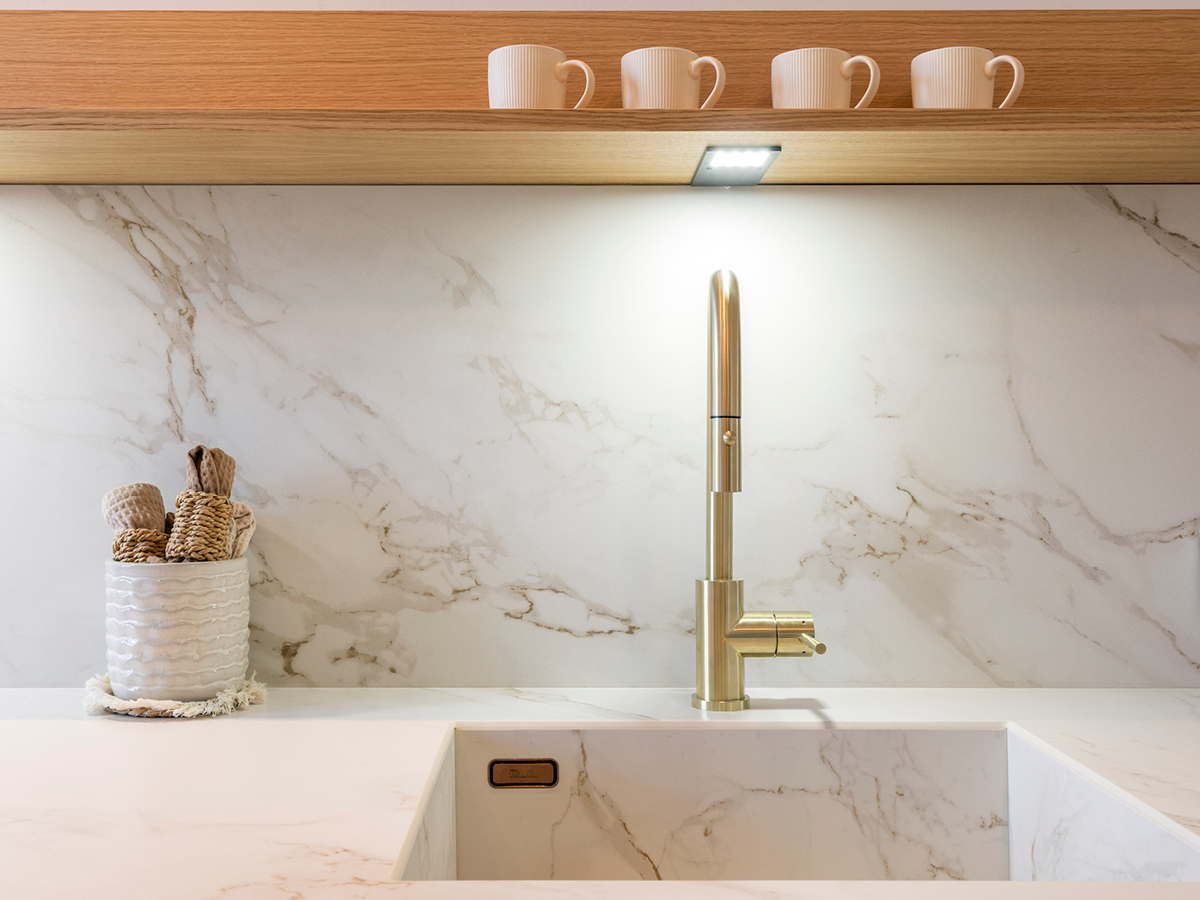 Côté électroménager, l’association de AEG et de la plaque BORA garantit une expérience culinaire performante et intuitive. Chaque corps de meuble et chaque aménagement ont été conçus avec précision pour s’adapter aux volumes et à l’architecture spécifique de la maison, respectant l’esprit ancien tout en offrant un confort moderne.