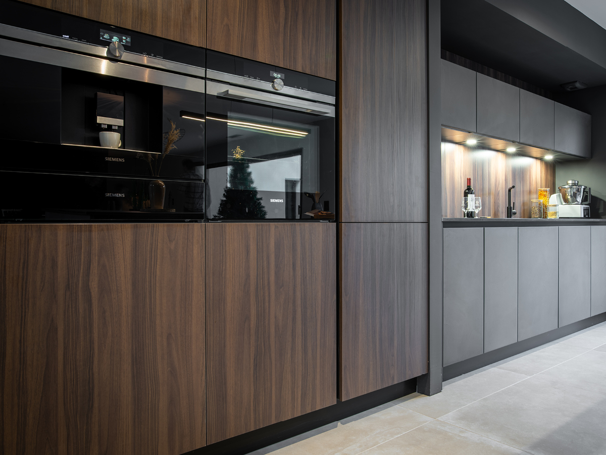 Pensée pour conjuguer design, contraste et fonctionnalité, cette cuisine séduit par son caractère affirmé et la profondeur de ses choix de couleurs.