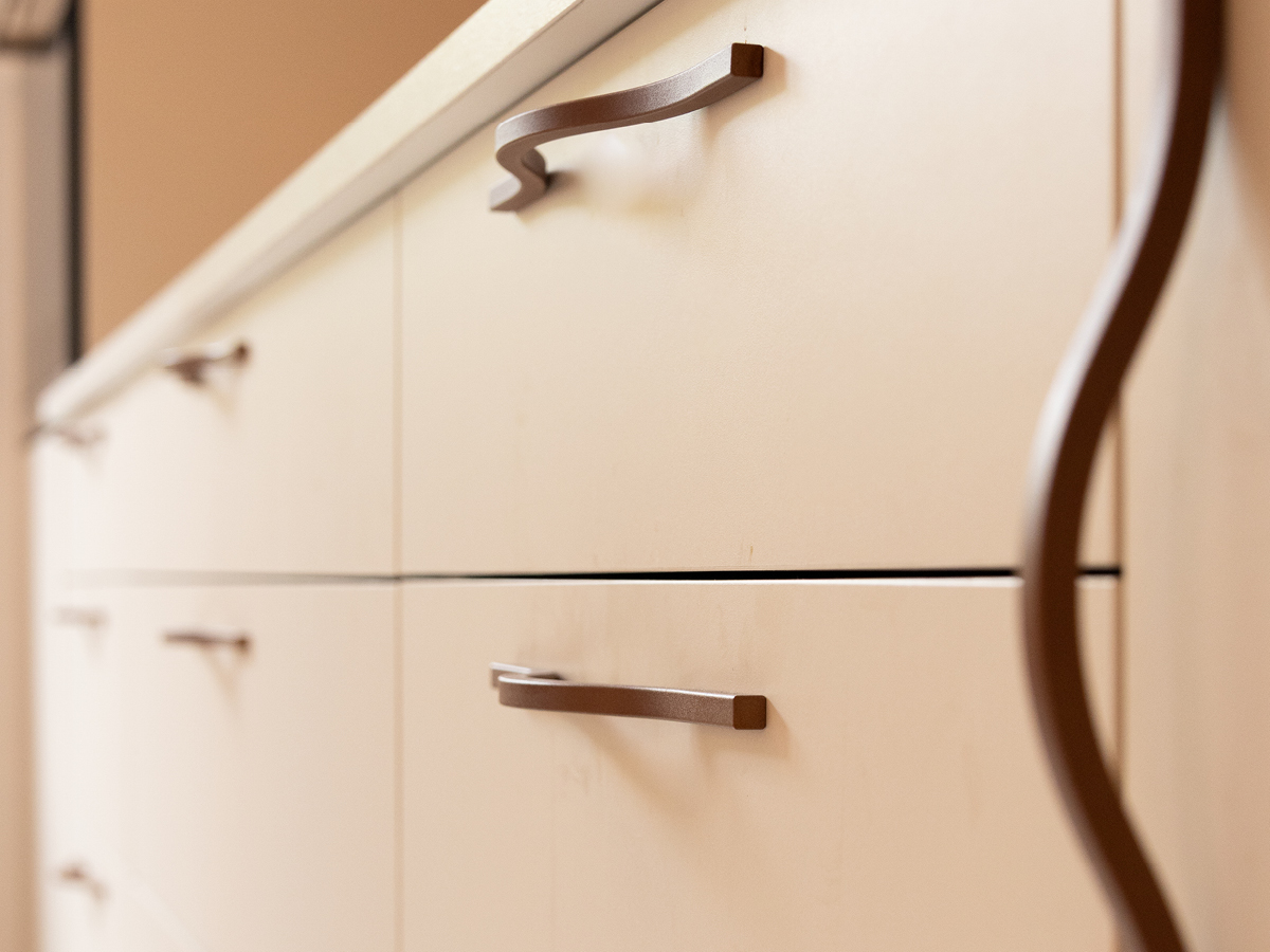 Plus en détail, les poignées laquées sur mesure offrent des courbes raffinées et une note de subtilité à l’ensemble.